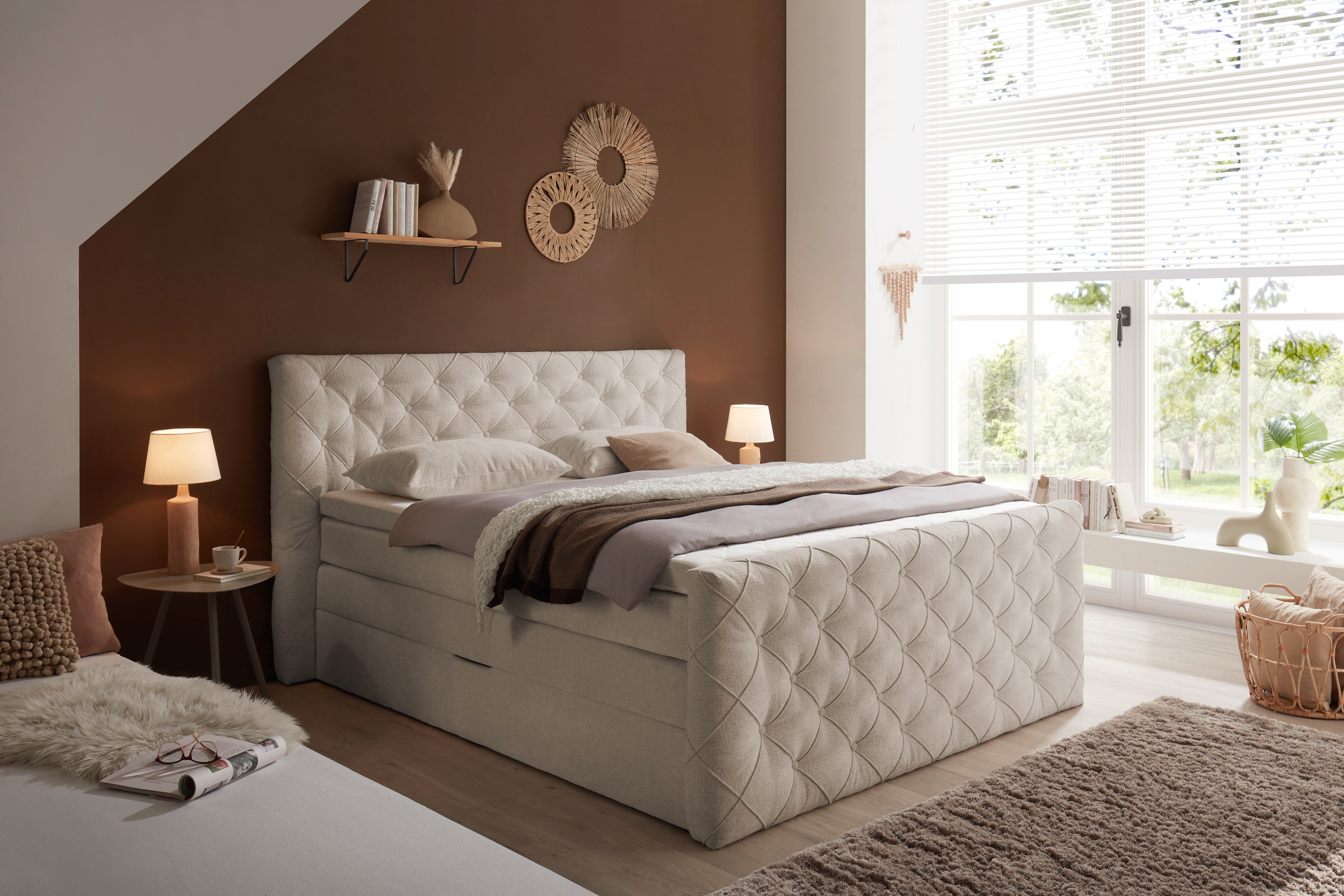 Boxspringbett cream von ED-Lifestyle - Modell Lyon Eine bunte Mischung aus Design, Funktionalität und Komfort.