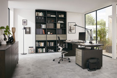 Stilvoll, ergonomisch, durchdacht – der höhenverstellbare Musterring Bürotisch aus der Modellreihe Kara-Frame verbindet modernes Design mit kraftvoller Stabilität. So sorgt das verkleidete Fußgestell für maximale Standfestigkeit, während die elektrische Höhenverstellung flexibles Arbeiten im Sitzen oder Stehen ermöglicht, was für mehr Bewegung sowie Wohlbefinden im Arbeitsalltag sorgt. Ihr Equipment bleibt dabei auf dem Tisch, lediglich die Kabel brauchen genug Spielraum. Doch stören diese nicht, da sie über den mittig gelegenen Kabeldurchlass in der Kabelwanne verschwinden. Damit ist stets eine aufgeräumte Arbeitsfläche mit sauberer Kabelführung gewährleistet. Wenn Ihnen der Schreibtisch gefällt und Sie sich gleichermaßen für die abgebildeten Möbel interessieren, dann können Sie diese über die Zusatzoptionen dem Warenkorb bequem hinzufügen und zugleich die Ausführung individualisieren. Lassen Sie sich vom E-Schreibtisch Kara Frame von Musterring überzeugen, denn hier wird Komfort, Stil sowie Produktivität auf ein neues Level gehoben.