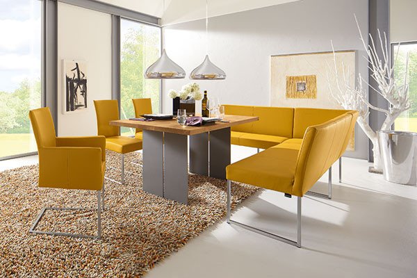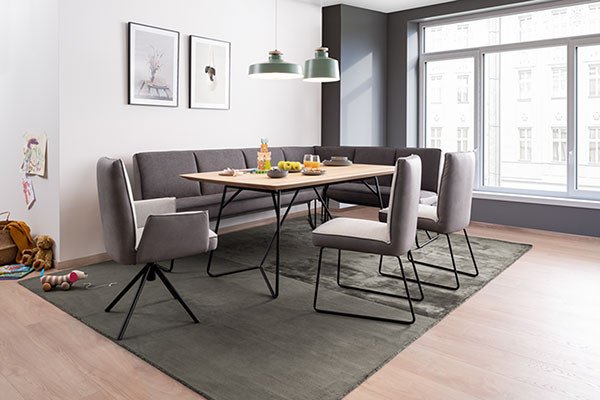 Mit einer Eckbankgruppe lässt sich ein einladender Speisebereich in gemütlichem Ambiente einrichten. Dabei eignet sich eine Essgruppe mit Eckbank und quadratischem Tisch hervorragend als platzsparende Essecke in der kleinen Küche, während eine große Eckbank mit Lederbezug den eindrucksvollen Essbereich im Wohnzimmer gelungen abrundet. Entdecken Sie in unserem Esszimmermöbel Online-Shop moderne Eckbänke aus Holz oder anderen hochwertigen Materialien und bestellen Sie die neue Sitzbank online mit passendem Tisch und Stühlen in benötigter Anzahl. Alle Planungsmöglichkeiten für Ihre neue Eckbankgruppe finden Sie im Möbel-Konfigurator direkt beim Produkt. Wählen Sie als Eckbank für Ihre Essgruppe zwischen pflegeleichten Holzbänken, die Sie mit beliebigen Sitzkissen kombinieren können, oder bestellen Sie die neue Esszimmerbank mit elegantem Leder- oder Stoffbezug. Besonders praktisch sind Truhenbänke für die Eckbankgruppe in Küche, Wohnzimmer oder Esszimmer, denn eine solche Eckbank bietet Stauraum unter der Sitzfläche. Planen Sie jetzt eine harmonische Eckbankgruppe einfach von zu Hause aus in Ihrer gewünschten Größe, Ausführung und Zusammenstellung.