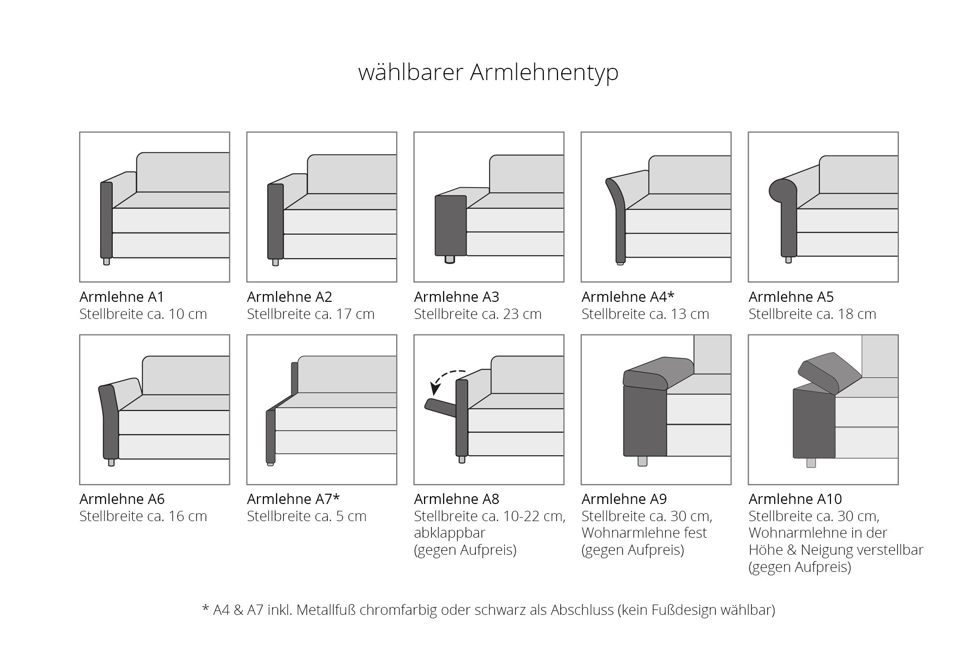 Breite (zzgl. Armlehnen + Longchair): ca. 143 cm