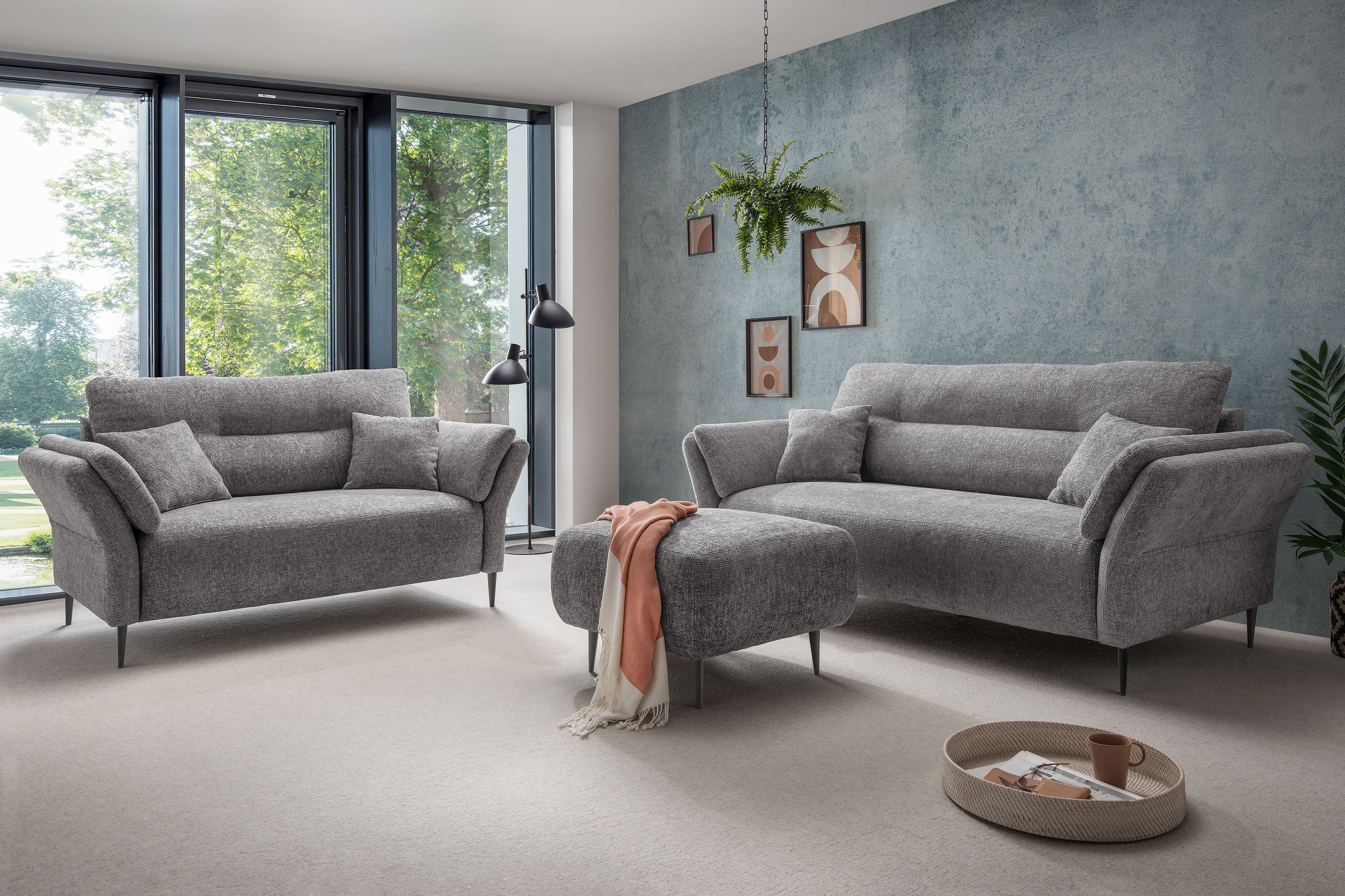 Beeindruckende Sofaprogramme sind wir von dem Hersteller Benformato bereits gewohnt, auch die neue Polstergarnitur Piatelli bildet hier keine Ausnahme, trifft den Zahn der Zeit und zieht ihre Betrachter stets in ihren Bann. Hier vereinen sich moderne Optik, bequemer Komfort und angenehme Haptik zu einem wundervollen Gesamtbild. Bezogen ist die Sitzgruppe, welche sich aus einem etwa 170 cm breiten 2-Sitzer sowie einem etwa 208 cm breiten 3-Sitzer zusammensetzt, in einem weichen Chenille-Strukturstoff im zeitlosen Grau - hier können Sie es sich so richtig gemütlich machen. Optional haben Sie die Möglichkeit, Ihre neuen Sitzmöbel mit einem passenden Hocker zu komplettieren. So können Sie nach der Arbeit genüsslich die Beine hochlegen und den Tag in Ruhe ausklingen lassen. Um das Sofa-Duo optimal an den bereits bestehenden Einrichtungsstil anzupassen, können Sie ganz nach Ihren Vorlieben und Vorstellungen Ihren persönlichen Favoriten aus einer Vielzahl von Bezugsstoffen sowie -farben wählen. Selbstverständlich sind beide Sofas im Rücken echt bezogen, wodurch sich Ihnen die Möglichkeit ergibt, diese frei im Raum zu platzieren. Verleihen Sie Ihrem Wohnzimmer eine behagliche Note und bestellen Sie - Piatelli aus dem Hause Benformato Polstermöbel.