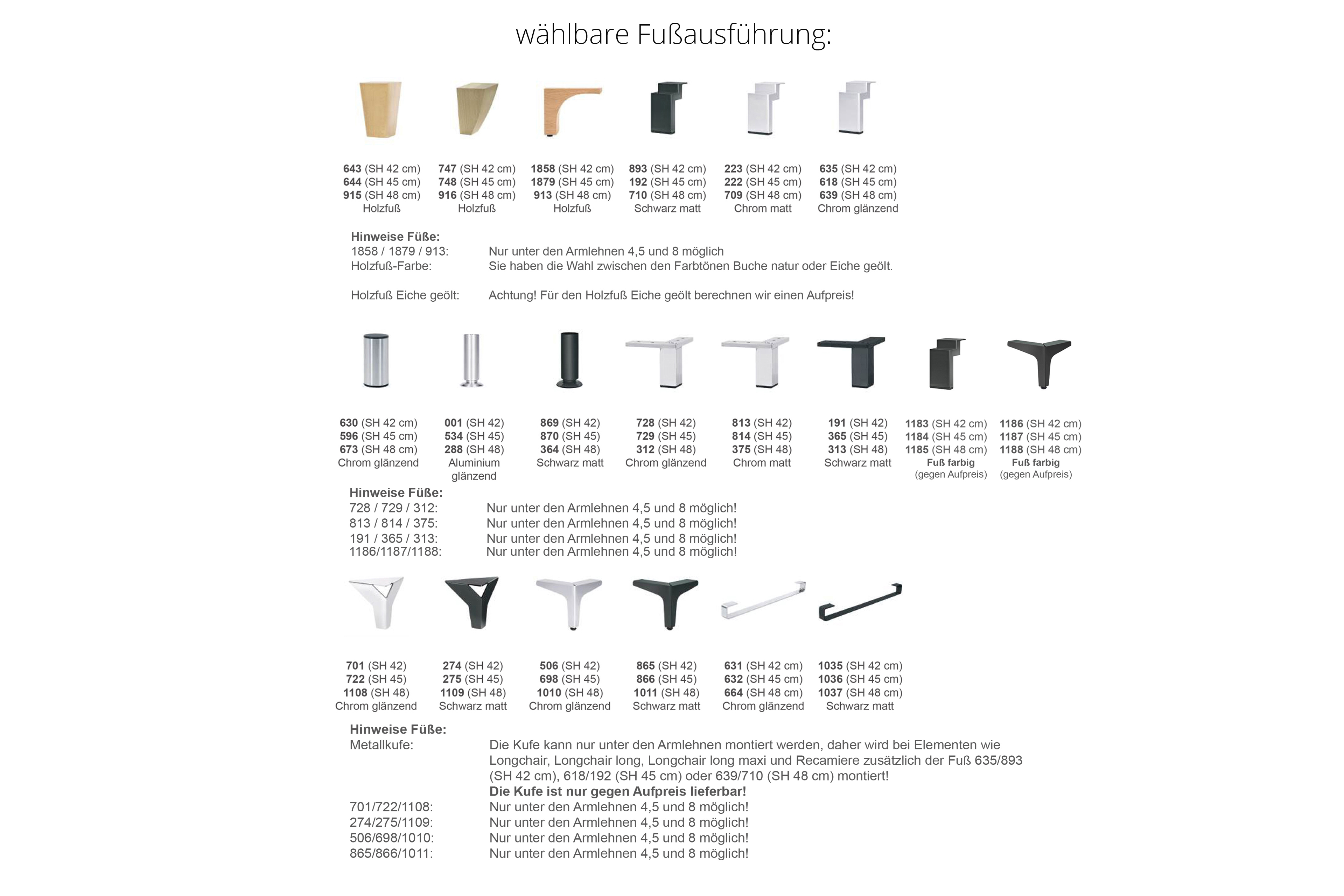 Die Nahtverteilung kann bei Stoff-, Leder- oder Kunstlederverarbeitung unterschiedlich ausfallen. Die Abzeichnung bei Steppmatten und Kissen sind design- und konstruktionsbedingt. Die Verarbeitung von Zier-, Kapp- oder Doppelnähten kann in den Stoff-, Leder- oder Kunstledervarianten unterschiedlich ausfallen.