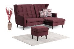 Geschwungene Linien, Steppung im Rücken und ein bemerkenswerter Farbton - die Polstergarnitur Lyon aus der Kollektion Letz macht ihrem Namen alle Ehre. Die Zusammenstellung aus einem 2-Sitzer sowie einer Recamiere bietet Ihnen auf einer Stellfläche von etwa 225 x 150 cm eine kleine aber feine Fläche, auf welcher man es sich gemütlich machen kann. Lehnen Sie sich bei einer Sitztiefe von etwa 57 cm sowie einer Sitzhöhe von ca. 48 cm zurück und genießen Sie viele entspannte Momente mit Ihren Lieben, bei netten Gesprächen oder aber bei Ihrem Lieblingsprogramm im Fernsehen. Der dunkelrote Bezug aus einer weichen Microfaser setzt einen Farbtupfer in Ihrem Wohnzimmer und lässt so manch anderes Möbelstück im Schatten stehen. Des Weiteren können Sie das Modell Lyon auch dank seines echt bezogenen Rückens ganz individuell in Ihren Räumlichkeiten platzieren, ob direkt vor der Wand oder aber frei im Raum, die Polsterecke macht in jeder Position eine gute Figur. Die dunklen Holzfüße sorgen nicht nur für die Standhaftigkeit, sondern verleihen dem Einrichtungselement auch eine elegant wirkende Note. Um das Ensemble zu vervollständigen, besteht die Möglichkeit, einen passenden Hocker hinzuzubuchen. Bestellen Sie Ihr neues Polstermöbel und erleben Sie ein extravagantes Wohngefühl.