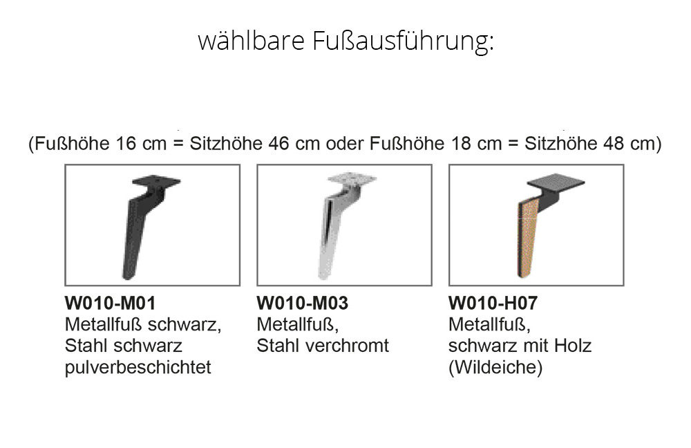 - Fußvariante: W010-M01 Metallfuß schwarz pulverbeschichtet, ca. 16 cm