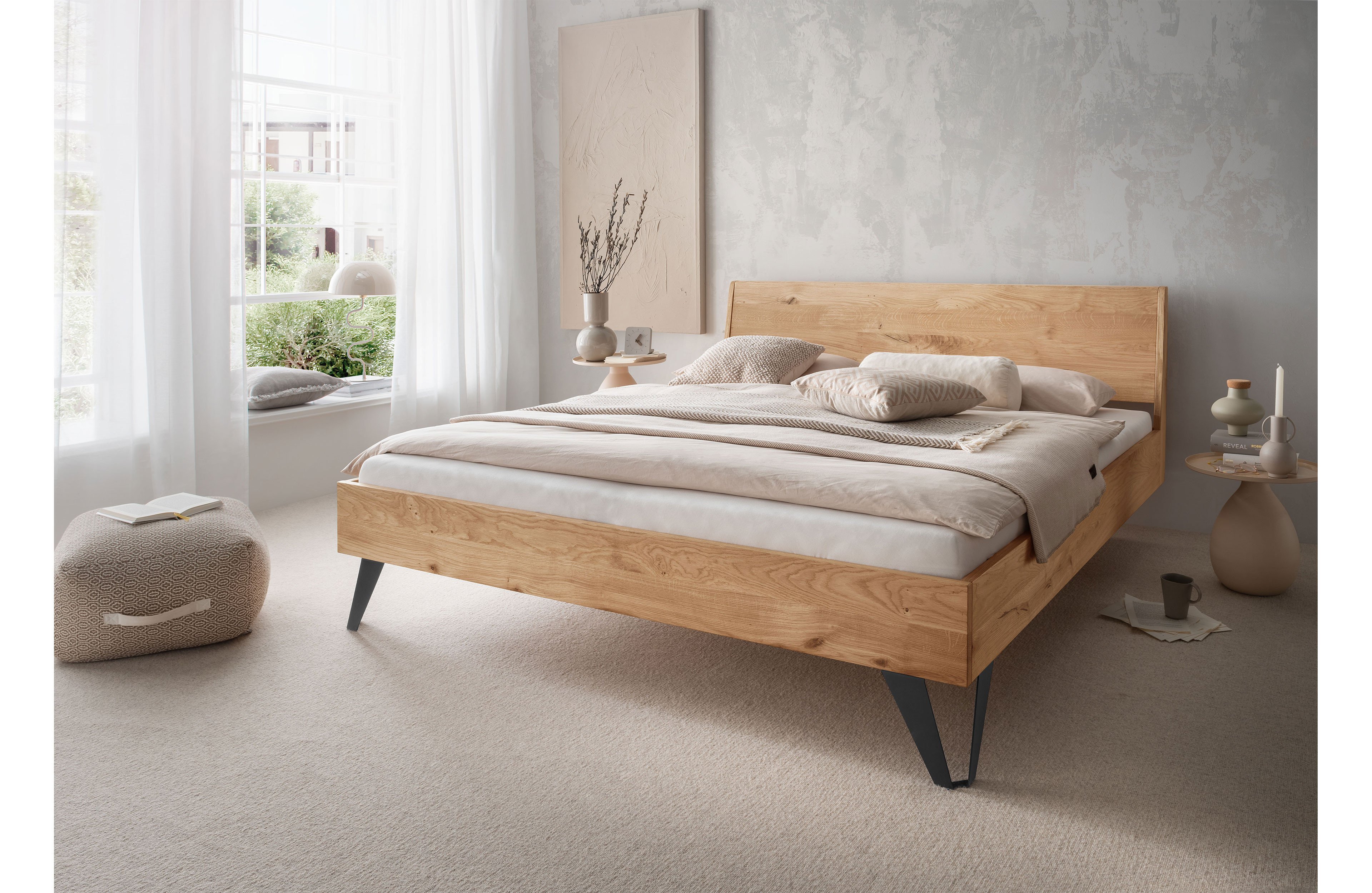 - Bettrahmen: Wildeiche massiv, geölt