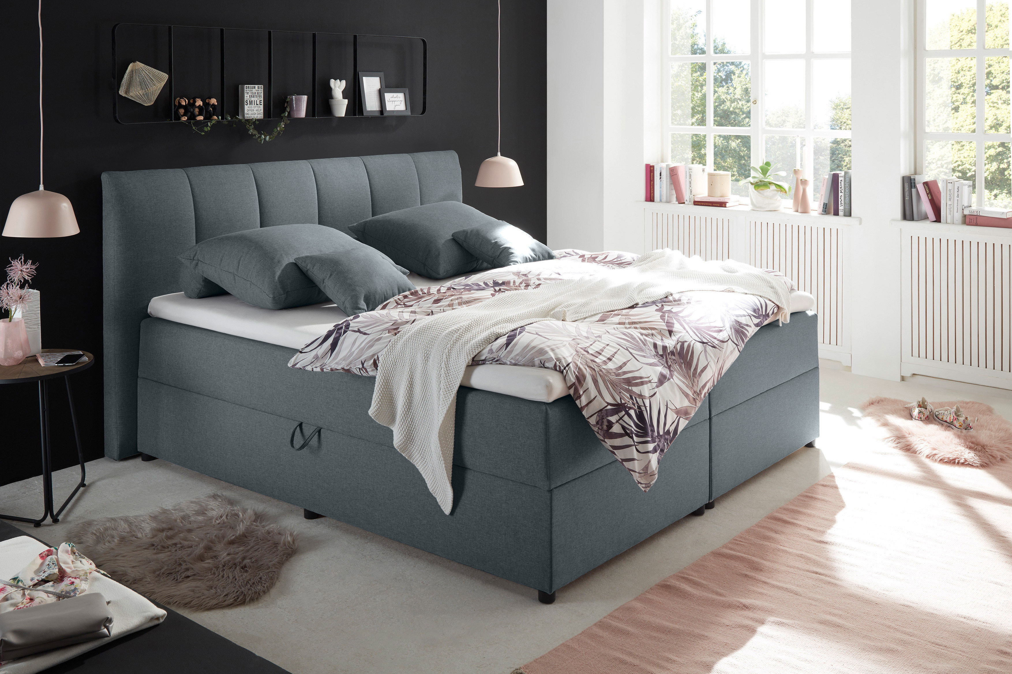 Polsterbett in Boxspringoptik anthrazit von ED-Lifestyle - Modell Granada Eine bunte Mischung aus Design, Funktionalität und Komfort.