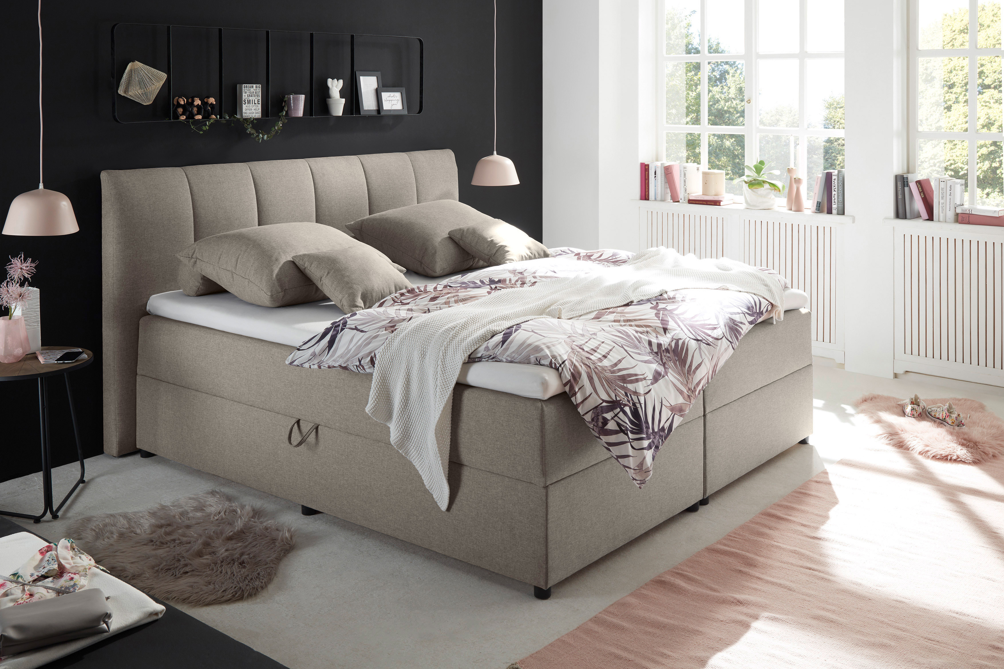 Polsterbett in Boxspringoptik schlamm von ED-Lifestyle - Modell Granada Eine bunte Mischung aus Design, Funktionalität und Komfort.