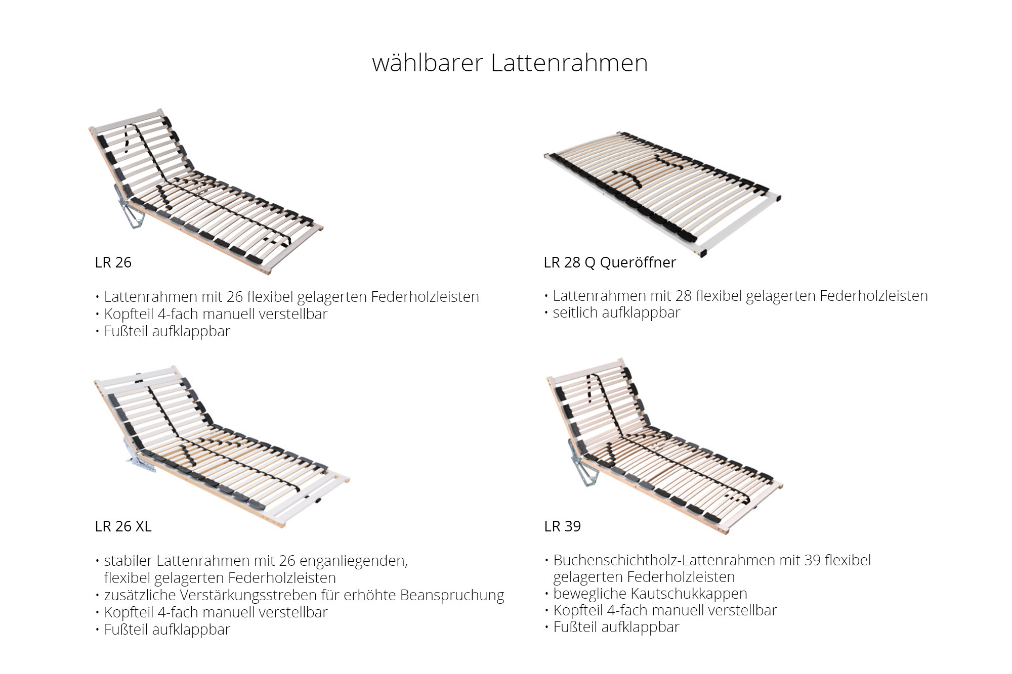 Lattenrahmen LR 28 Q nicht möglich bei Bettbreite ca. 120 sowie 140 cm. - optionale Matratze: