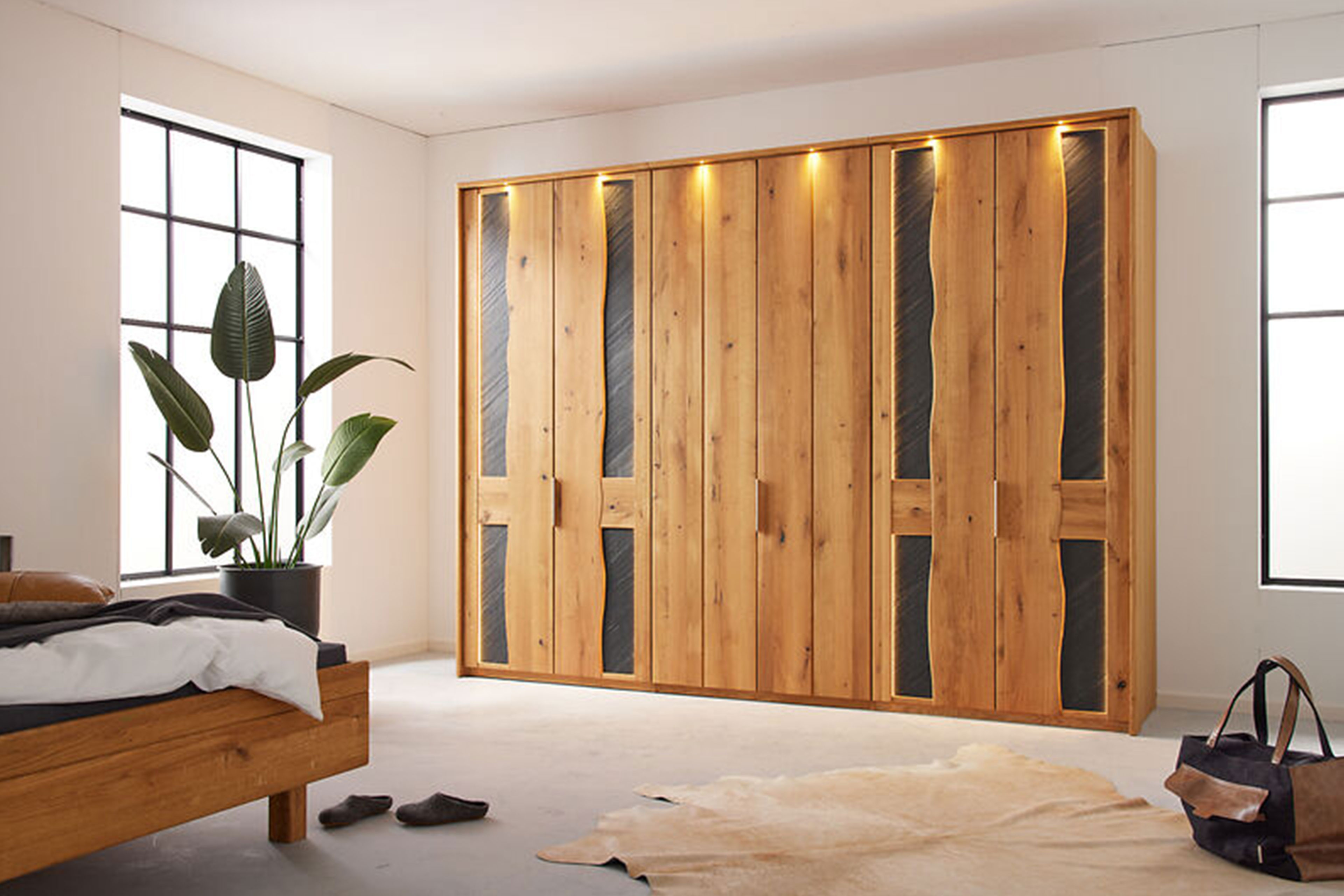 - Kleiderschrank 6-türig, davon 4 Türen mit Schieferakzent