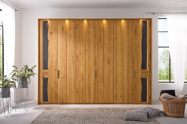 Neben dem Bett gehört ein Kleiderschrank zu den wichtigsten Bestandteilen der Schlafzimmereinrichtung, weil er nicht nur das Raumambiente intensiv prägt, sondern den benötigten Stauraum ins Schlafzimmer bringt. Ein Schrank dient nicht nur der ordentlichen Unterbringung Ihrer Kleidung, sondern sollte auch zur restlichen Schlafzimmereinrichtung passen. Wählen Sie Ihren neuen Kleiderschrank daher aus einer facettenreichen Fülle gemäß Ihrer Ansprüche an Design und Funktion, etwa einen klassischen Drehtürenschrank, modernen Schwebetürenschrank oder begehbaren Kleiderschrank über Eck. Auch bezüglich der Designs präsentiert Möbel Letz besonders vielfältige Kleiderschränke, angefangen beim Massivholzschrank im Landhausstil über den weißen Schrank in Hochglanz bis hin zum Schwebetürenschrank mit Spiegelfront. Modellabhängig stehen für die Kleiderschränke Zusatzoptionen und/oder Möbelplaner zur individuellen Gestaltung zur Verfügung. Dadurch erhalten Sie die Möglichkeit, den Schrank optisch auf Ihre restliche Schlafzimmereinrichtung abzustimmen, die Ausstattung vom Kleiderschrank wunschgemäß zu strukturieren, eine Schrankbeleuchtung oder weitere Extras sowie zusätzliche Möbel für Ihr Schlafzimmer direkt zum favorisierten Schlafzimmerschrank zu bestellen.