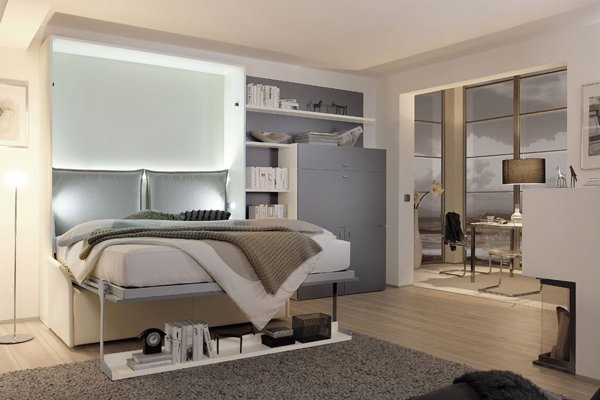 Holen Sie aus Ihrem kleinen Schlafzimmer das Maximum heraus: Die richtigen Schlafzimmermöbel lassen den Raum wohnlicher erscheinen und bieten gleichzeitig die gewünschten Funktionen. Generell empfehlen sich Schlafzimmermöbel in hellen Farben, welche den Raum nicht zusätzlich optisch verkleinern. Zudem sind Spiegel, etwa in die Front des Kleiderschrankes integriert, ein tolles Mittel, um dem Schlafzimmer mehr Tiefe zu verleihen. Eckschränke sind ideal, um eine Ecke im Schlafzimmer mit viel Stauraum auszustatten. Als Kleiderschrank für ein kleines Schlafzimmer eignet sich ein Falt- oder Schwebetürenschrank. Da die Türen nicht weit zum Raum hin aufschwingen, können Sie den Kleiderschrank näher am Bett platzieren. Statt einem prunkvollen Boxspringbett sollten Sie für ein kleines Schlafzimmer lieber zu einem schlanken Holz-, Metall- oder auch Polsterbett greifen. Besonders viel Platz spart ein Schrankbett im Schlafzimmer ein. Schrankbetten bieten aufgeklappt ein komfortables Einzelbett bzw. Doppelbett mit Ihrer Wunschmatratze. Zusammengeklappt erscheint das Schrankbett als Kleiderschrank, Sideboard oder Wohnwand, sodass es zum ansprechenden Möbel im kleinen Schlafzimmer, Appartement oder Gästezimmer wird. Tagsüber steht Ihnen die freie Fläche für die Büroarbeit am Schreibtisch oder für Ihre kreativen Hobbys zur Verfügung. Für gemütliche Schlafzimmer im Dachgeschoss gibt es flexible Schrank- und Regalsysteme, die sich den Dachschrägen anpassen. Um Büro und Schlafzimmer zu vereinen, empfehlen wir einen Sekretär, dessen Klappe bei Bedarf zum Schreibtisch wird. Zum Schminken und Frisieren gibt der Schreibschrank auch einen geeigneten Schminktisch im Schlafzimmer ab.