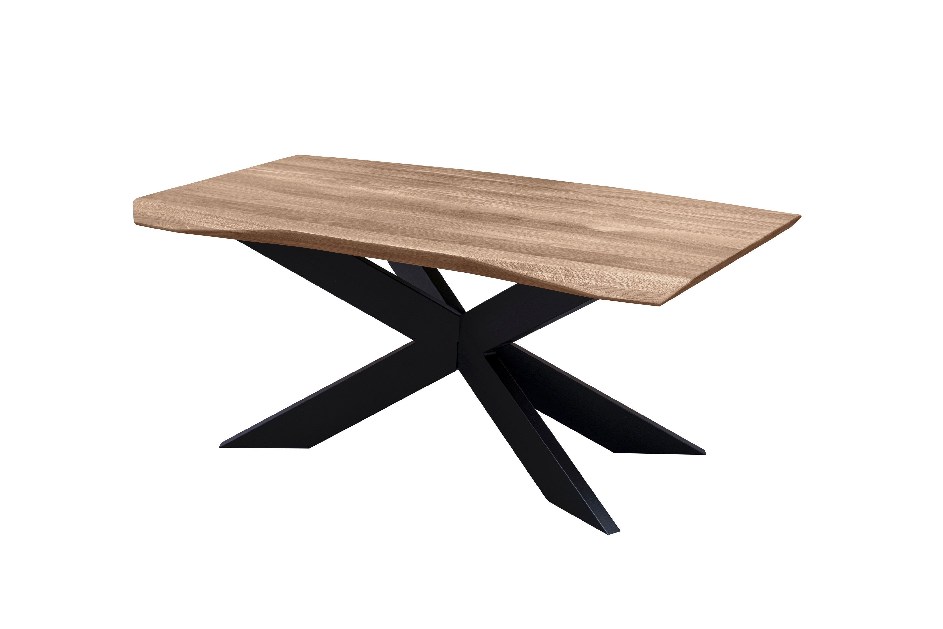 - Tischplatte: Eiche, geölt, massiv, durchgehende Lamelle, Kantenstärke ca. 4 cm