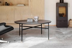 Der Couchtisch #243 des dänischen Herstellers Skovby verkörpert die perfekte Symbiose aus zeitloser Eleganz und funktionalem Design. Die Tischplatte, gefertigt aus hochwertigem Eichenfurnier in einem stilvollen Schwarzton, verleiht dem Möbelstück eine moderne Ausstrahlung, die sich harmonisch in jede Wohnlandschaft einfügt. Auf der edlen Tischplatte thront eine graue Keramikplatte, die nicht nur optisch ansprechend ist, sondern auch durch ihre Widerstandsfähigkeit und Pflegeleichtigkeit überzeugt. Diese besondere Kombination aus Materialien schafft eine einladende Atmosphäre und lädt zum Verweilen ein. Das Vierfußgestell aus schwarzem Stahl bietet nicht nur eine stabile Basis, sondern setzt auch einen markanten Akzent im Gesamtbild des Tisches. Die klare Linienführung und die robuste Konstruktion spiegeln die traditionelle Handwerkskunst wider, für die Skovby bekannt ist. Jedes Detail des Couchtisches zeugt von einem hohen Qualitätsanspruch und der Liebe zum Handwerk, die in jedes Stück einfließt. Besonders hervorzuheben ist die dänische Gemütlichkeit, die durch das Design und die Materialwahl des Skovby Couchtischs zum Ausdruck kommt. Gönnen Sie sich dieses Stück dänischer Handwerkskunst und erleben Sie, wie es Ihr Zuhause bereichert und eine behagliche Atmosphäre schafft.