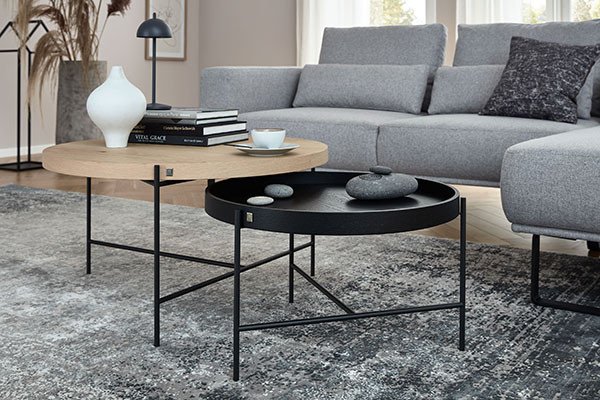 Couchtische sind mit ca. 30 bis 50 cm generell niedrige Wohnzimmermöbel, sodass sie mit der Sitzhöhe vieler Polstermöbel harmonieren und Sie das auf dem Wohnzimmertisch stehende Getränk bequem vom Sofa aus erreichen. Besonders niedrige Tische erzeugen einen wohnlichen Lounge-Charakter, während Sie an einem höheren Wohnzimmertisch gut bei einem Gesellschaftsspiel auf der Couch zusammensitzen können. Beim Couchtisch online Kaufen sollten Sie beachten, dass sich die Höhe der Couchtische und Polstermöbel modellabhängig unterscheiden. Noch unterschiedlicher sind die Breiten- und Tiefenmaße. Damit der Couchtisch perfekt zum Raum und Sofa passt, können Sie aus zahlreichen Größen wählen und diese bei einigen Tischmodellen individuell verändern. In einem großen Wohnzimmer kommen auffällige, auch mehrteilige Couchtische hervorragend zur Geltung, während Sie für kleinere Wohnzimmer wunderschöne kleine Couchtische finden, die mit einer Auszugsfunktion trotzdem zum Esstisch wachsen können. Neben runden und rechteckigen Couchtischen sind kreative geformte Tische erhältlich. Eine große Eckcouch oder ein langes Einzelsofa harmoniert mit einem rechteckigen Couchtisch hervorragend, während ein quadratischer Couchtisch oder Beistelltisch sehr gut zur symmetrischen Wohnlandschaft passt. Runde Wohnzimmertische tragen zu einer geselligen Atmosphäre bei und schaffen einen weichen Kontrast zur geradlinigen Couch. Außerdem sinkt bei einem runden oder ovalen Couchtisch das Risiko, sich an den niedrigen Tischecken zu verletzen.