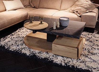 Lassen Sie sich von unserer Vielfalt an Farben, Formen und Materialien inspirieren, um einen neuen Couchtisch zu bestellen, mit dem Sie Ihren persönlichen Wohnstil unterstreichen. Sie haben einen Tisch im Wunschdesign gefunden, aber das Modell ist zu klein für die Couch in Ihrem Wohnzimmer? Viele Couchtische zeigen sich nicht nur in dieser Hinsicht flexibel. So können Sie viele Tische in einer anderen Größe und Ausführung konfigurieren und mit verschiedenen Extras ausstatten, die Ihnen den Aufenthalt im eigenen Wohnzimmer versüßen. Gestalten Sie beispielsweise die Couchtische mit Beleuchtung, Drehfunktion, zusätzlichem Stauraum oder einer ausziehbaren und höhenverstellbaren Tischplatte. Wenn Sie den richtigen Couchtisch für Ihr Zuhause gefunden haben, können Sie sich über den Möbel-Konfigurator bei planbaren Tischen harmonierende Möbel anzeigen lassen. Bestellen Sie beispielsweise Sideboards oder Vitrinen aus der Möbelserie mit, um Ihr Wohnzimmer umfassender neu zu gestalten. Für Inspirationen zur gemütlichen Wohnzimmereinrichtung bieten wir Ihnen außerdem eine große Polstermöbelauswahl von namhaften Herstellern, die frei planbare Sofas und Couches bereithält. Gern unterstützt Sie das Team von Möbel Letz bei der Zusammenstellung Ihrer Wohnmöbel sowie bei sonstigen Anliegen rund um das Online Möbel Kaufen.