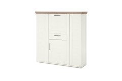 Sind Sie auf der Suche nach einem Highboard, das sich von anderen absetzt? Dann haben Sie mit York von set one by Musterring genau das passende Modell gefunden. Dieses einzigartige Element ist mit zwei Karussells – jeweils eines links und eines rechts – ausgestattet, welche in verschiedene Positionen gedreht werden können. Jede Seite hält vier offene Fächer für Sie parat, in welche Sie Ihre persönlichen Gegenstände platzieren können. Drehen Sie das Karussell, um sie zu verbergen, halb geöffnet oder ganz geöffnet zu präsentieren. Mit so einem außergewöhnlichen Merkmal begeistert diese Kommode auf vielen Ebenen. Perfekt geeignet als Barschrank ist sie auch, denn hinter der oberen Barklappe befindet sich ein Glaseinlegeboden. Für Kleinigkeiten wurde ein Schubkasten direkt darunter platziert und mit der unteren Tür, hinter welcher sich ein weiterer Boden verbirgt, erhalten Sie umfangreichen Stauraum. In den Zusatzoptionen finden Sie drei verschiedene Ausführungen, mit denen Sie dieses Highboard zu einem passenden Element in Ihrem Zuhause machen. Entdecken Sie noch heute die Vielfalt von York von set one by Musterring.