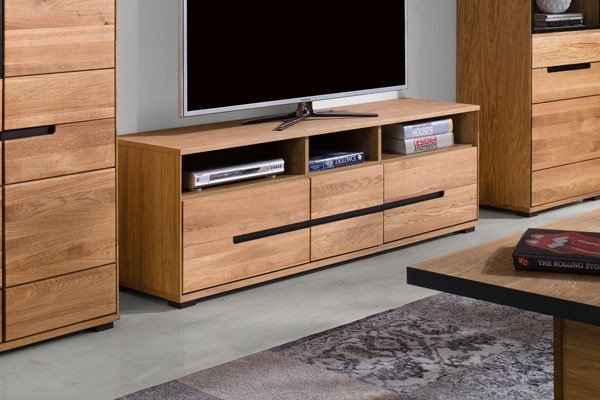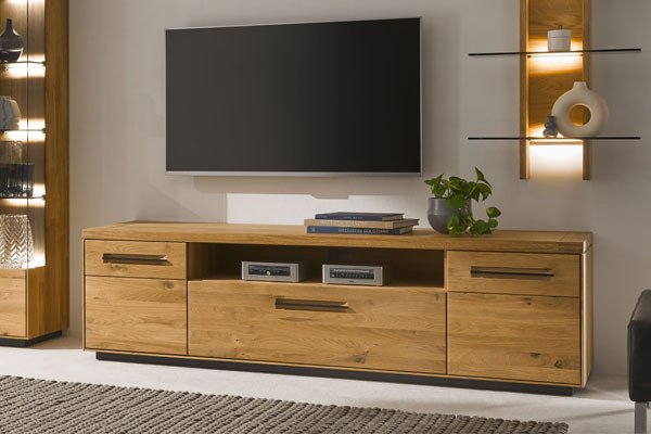 TV-Schränke gibt es in den unterschiedlichsten Ausführungen, beispielsweise als TV-Lowboard. Dieses TV-Möbel ist ein Klassiker und zeichnet sich, wie der Name bereits vermuten lässt, durch seine geringe Höhe aus, ist in der Breite dafür überaus variabel. So findet sich für den kleinen Fernseher, etwa das Zweitgerät im Gästezimmer, ein ebenso adäquates TV-Lowboard, wie für den Oberklasse-Fernseher mit OLED- oder QLED-Technik. Meist gesellt sich bei dem TV-Lowboard zu der zentralen Stellfläche für das TV-Gerät eine bunte Mischung aus offenen und geschlossenen Fächern sowie Türen oder Klappen, wodurch allerlei Raum für das benötigte Zubehör geboten wird. Ähnlich verhält es sich bei einer anderen Variante der TV-Möbel. Ein TV-Schrank kann sich beispielsweise auch als offensichtlicher Schrank präsentieren, ohne seine Bestimmung als Fernsehmöbel auf den ersten Blick zu offenbaren, denn er verbirgt seinen „Schatz“ hinter Türen. Je nach Modell und Hersteller handelt es sich um Dreh- oder Schiebetüren, welche teilweise sogar per Schloss gesichert werden können, um unbefugten Zugriff zu verhindern. Für welchen TV-Schrank Sie sich entscheiden, bleibt ganz Ihnen überlassen - eine umfangreiche Auswahl erhalten Sie auf jeden Fall im Möbel Letz Online-Shop.