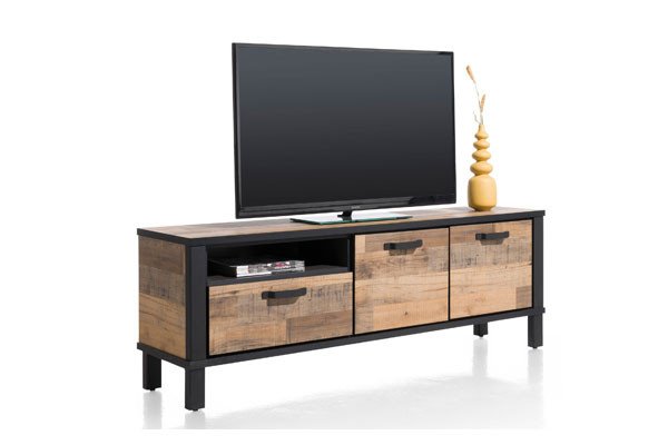 Das TV-Rack ist sicherlich eines der bekanntesten TV-Mediamöbel. Meist vereinen sich kühle Materialien, wie Glas und Metall, zu einem puristisch wirkenden Ganzen. Dennoch bietet dieser TV-Tisch oder auch Fernsehtisch alles, was benötigt wird, um die Flimmerkiste samt Zubehör unterzubringen. Obenauf thront natürlich der Hauptdarsteller, die darunter liegenden Fächer übernehmen die tragende Rolle, wodurch auch die Statisten ins rechte Licht gerückt werden. Meist gesellen sich im TV-Rack auch diverse Abspielgeräte als ergänzendes Equipment zum Fernseher, wodurch das Mediamöbel gern auch zum HiFi-Rack avanciert, denn sowohl für die perfekte optische als auch akustische Untermalung findet hier alles eine perfekte Bühne. Um störende Kabel der diversen Geräte aus dem Blickfeld zu eliminieren, ist meist rückwärtig im Korpus eine entsprechende Kabelführung vorgesehen.