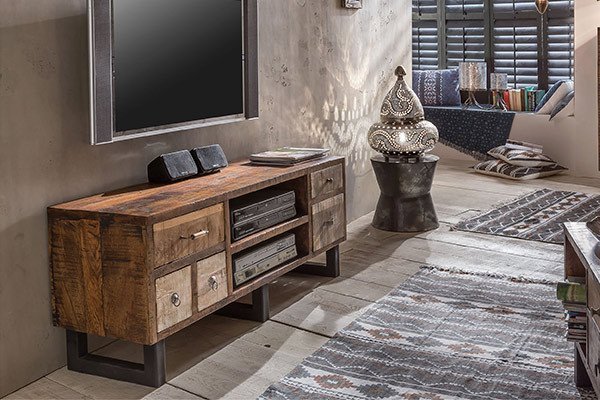 Verschiedene Formen, Materialien und Ausführungen, vom TV-Schrank aus Massivholz im Landhausstil über das TV-Rack aus Glas und Metall im Industriedesign bis zum TV-Standfuß aus Edelstahl im puristischen Look, bieten eine mannigfaltige Auswahl aus dem facettenreichen Pool der TV-Möbel.