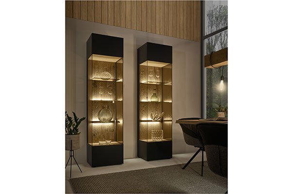 Fast so offen wie ein Regal wirken Sammlervitrinen, deren Front sowie oftmals auch die Seiten überwiegend aus Glasscheiben bestehen. Ihre wertvollen Gläser oder Vasen rücken dadurch in den Mittelpunkt im Raum und sind dennoch optimal geschützt. Bei kleinen Kindern im Haushalt sollten Sie darauf achten, dass es sich um Sicherheitsglas handelt, was bei den meisten hochwertigen Vitrinen ohnehin der Fall ist. Die Glasflächen sitzen bei einer solchen, meist schmalen Sammlervitrine in einem eleganten Rahmen. Einen besonders exklusiven Hintergrund für die Sammlerstücke schaffen Sie sowohl mit einer inklusiven bzw. optionalen Beleuchtung als auch mit einer Spiegelrückwand, die den edlen Eindruck noch intensiviert. Standvitrinen mit großem Glasanteil finden Sie in verschiedenen Breiten und Höhen, sodass Sie mit dem Möbelstück eine Stellfläche Ihrer Wahl im Wohnbereich ausfüllen können. Übrigens sind solche Glasvitrinen auch für das geräumige Schlafzimmer, Ihr Büro oder das Kinder- und Jugendzimmer eine gute Idee, um einen individuellen Glanzpunkt zu setzen.