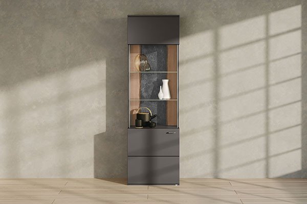 In einer Vitrine bringen Sie solche Dinge unter, die zu schade sind, um hinter verschlossenen Türen zu verschwinden. Das können ausgesuchte Gläser oder Porzellanstücke sein, aber ebenso lässt sich die geliebte Sammlung Ihrer Modellautos, Bücher oder besonderer Whiskey-Flaschen hinter den Glasscheiben ausstellen. Eine optional zubuchbare LED-Beleuchtung verleiht den Schmuckstücken zusätzlichen Glanz. Während die Ausstellungsfläche bei einer komplett verglasten Vitrine maximiert wird, bieten teilverglaste Vitrinen sowie Wohnzimmerschränke mit Glaseinsätzen noch gleichzeitig Stauraum neben den Präsentationsmöglichkeiten – je nach Modell, in Form von Schubladen oder Fächern hinter Türen. Lernen Sie die verschiedenen Arten von Vitrinen sowie Vitrinenschränken hier kennen und entdecken Sie die eleganten Möbelstücke in vielseitigen Designs.